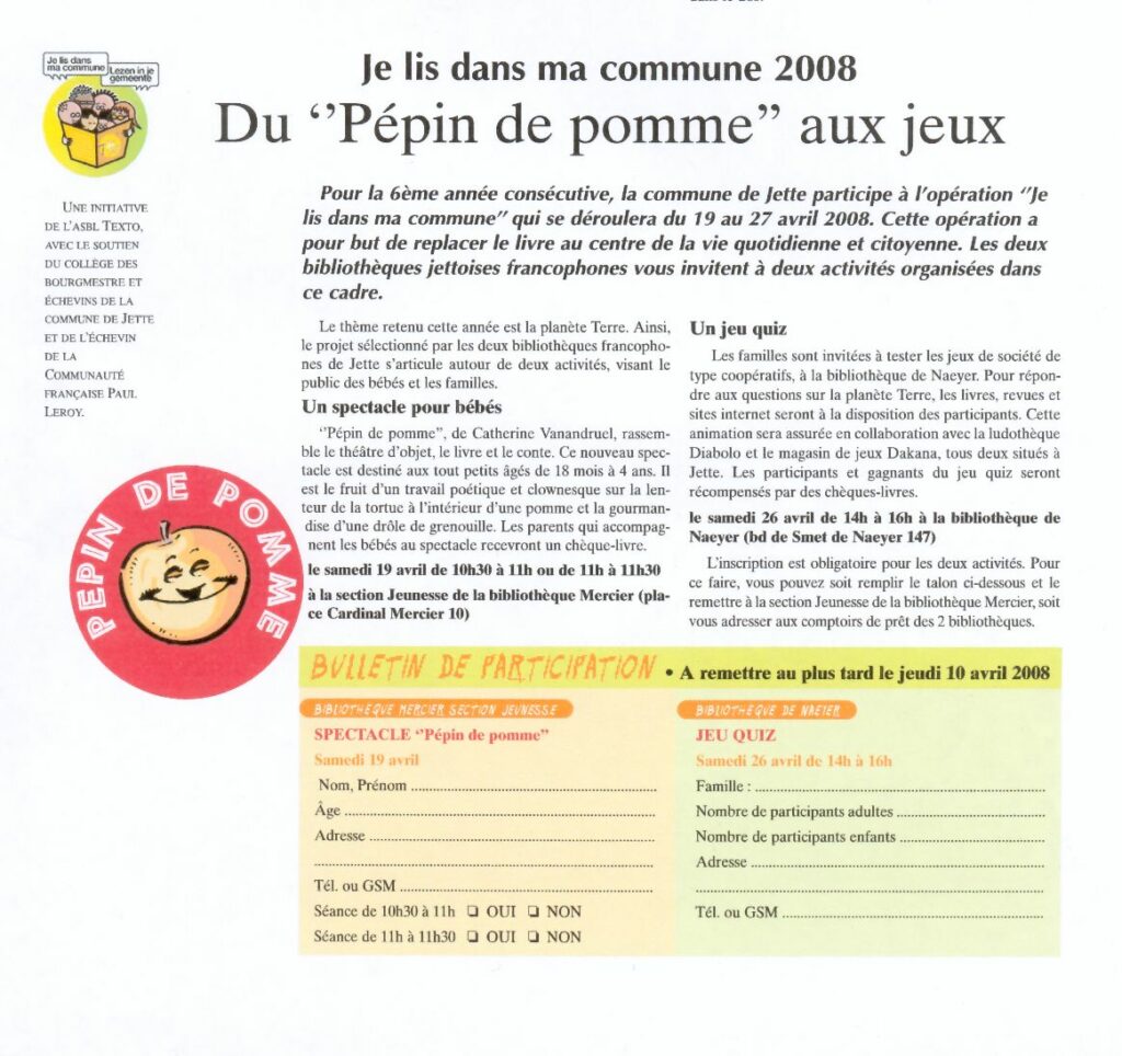 « Pépin de pomme » est destiné aux tout-petits accompagnés par un adulte.